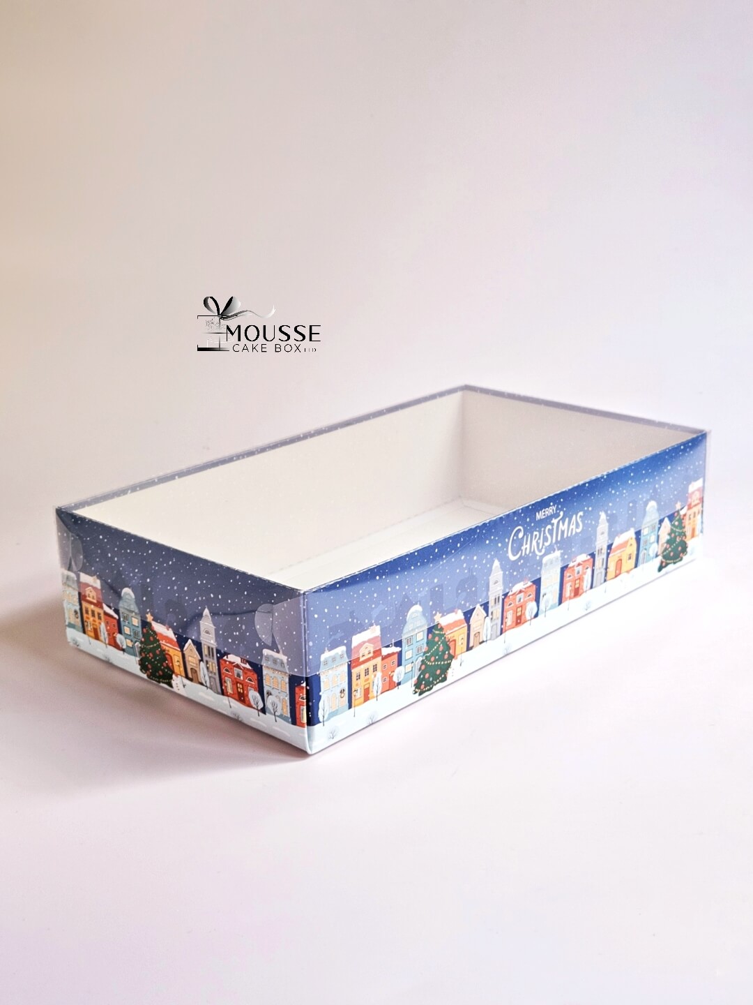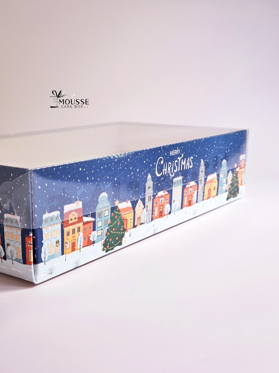 Christmas Town patterned box for macarons in gloss finish with a clear lid, it will helps you to demo your creations.