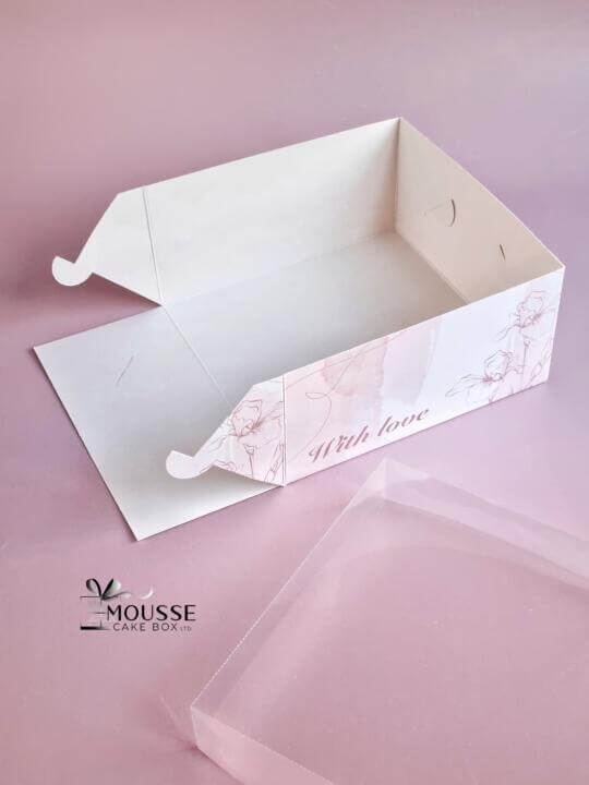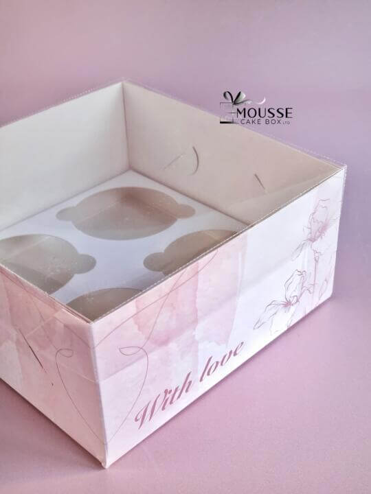 Stylish cupcake box, sturdy and secure for 4 cupcakes, top window helps you to demo your creations.