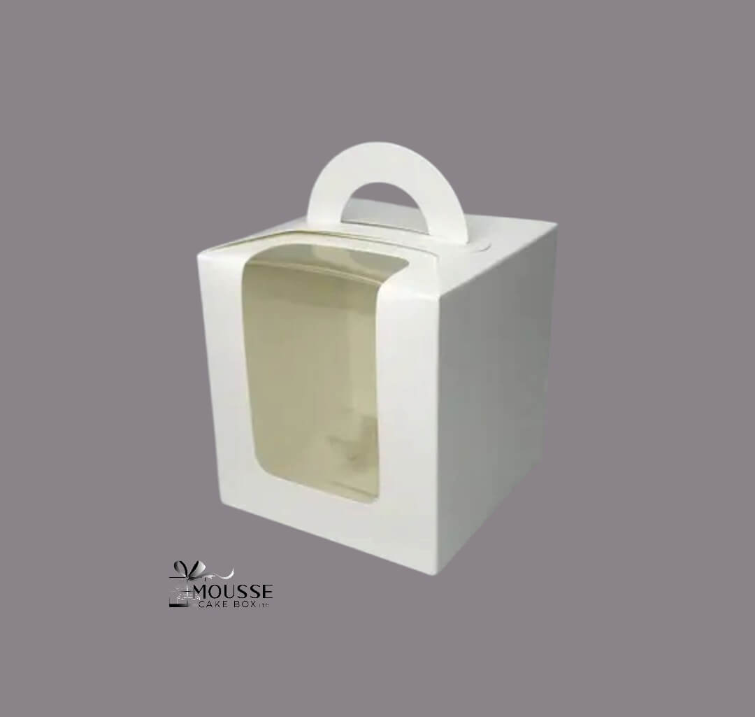 Stylish and simple pastry box, sturdy and secure in white matt finish, top side window helps you to demo your creations.