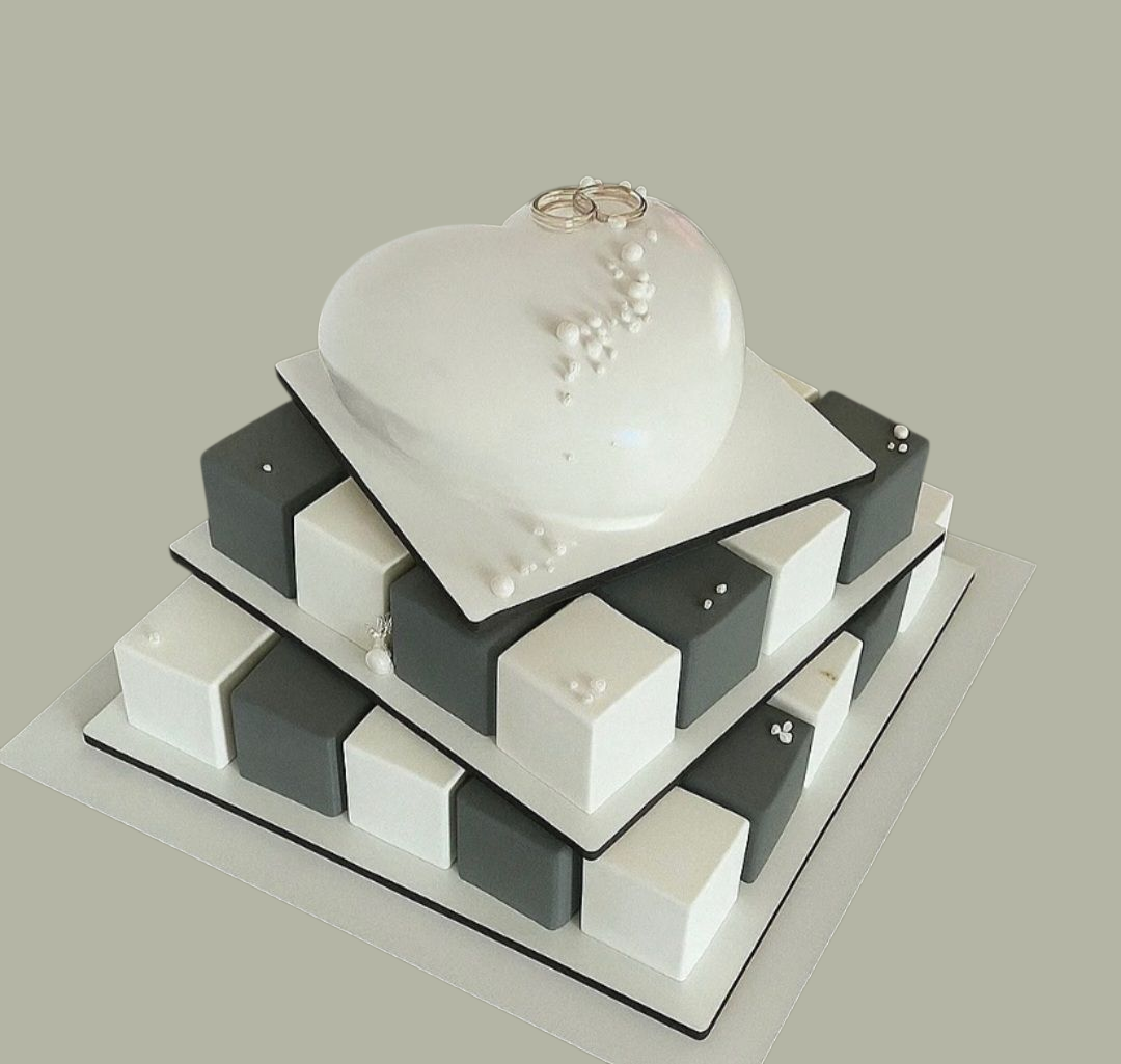Bottom Base 30cm, Middle Base 24cm, top base 18cm, 6cm hight between tiers.