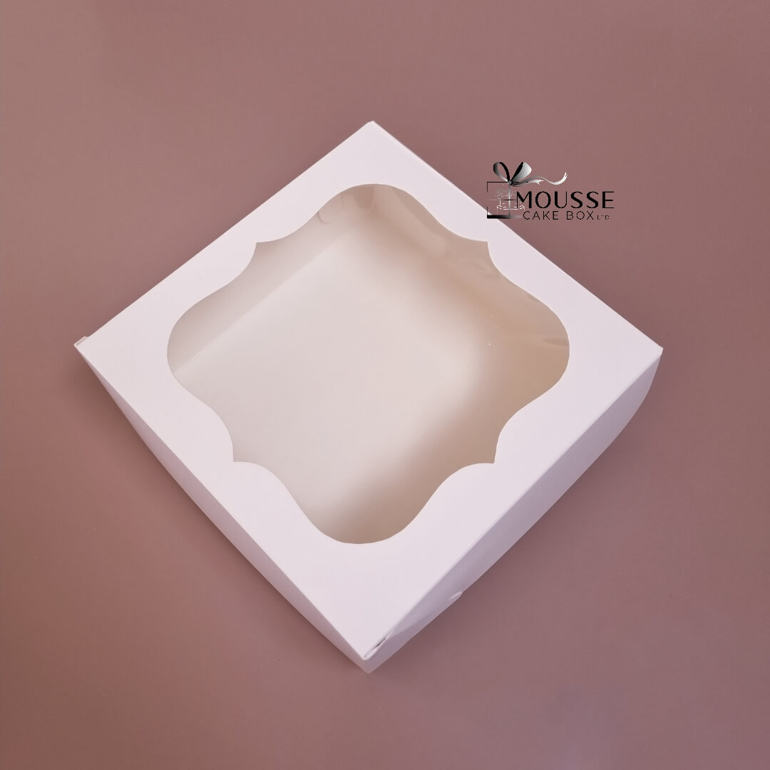 Our beautiful standard boxes for macaroons in white matt finish, wide top window helps you to demo your creations.